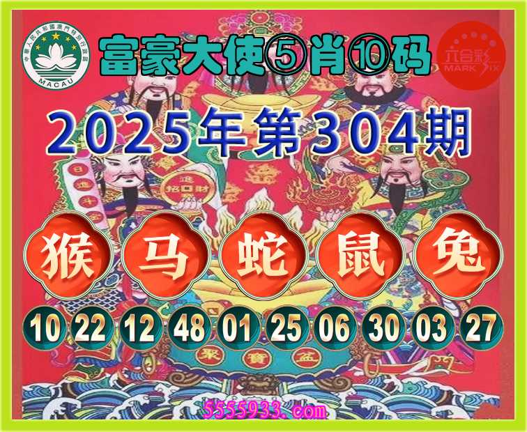 304期:《富豪大使》 ⑤肖⑩码【猴蛇鼠兔】开:马48