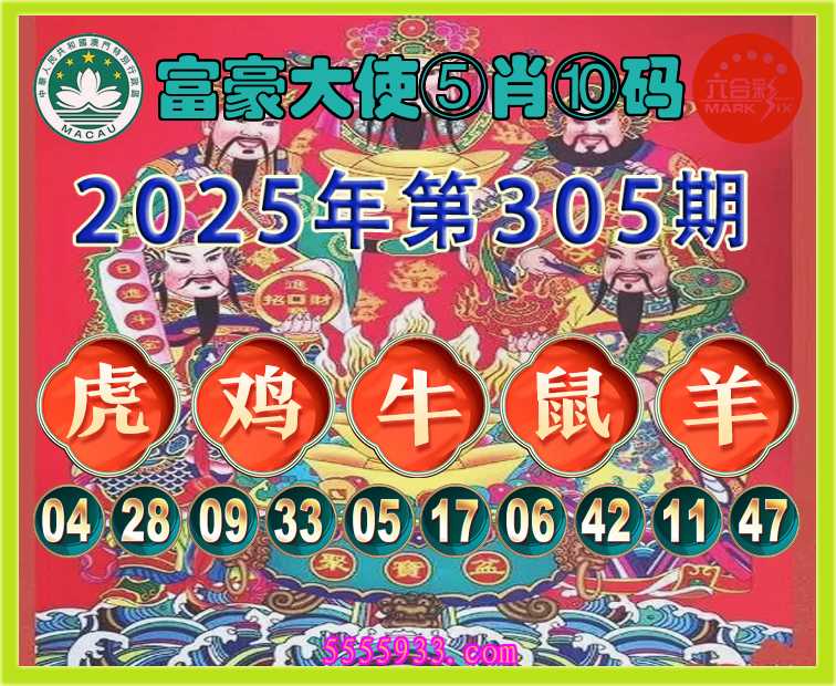 305期:《富豪大使》 ⑤肖⑩码【虎鸡牛羊】开:鼠42