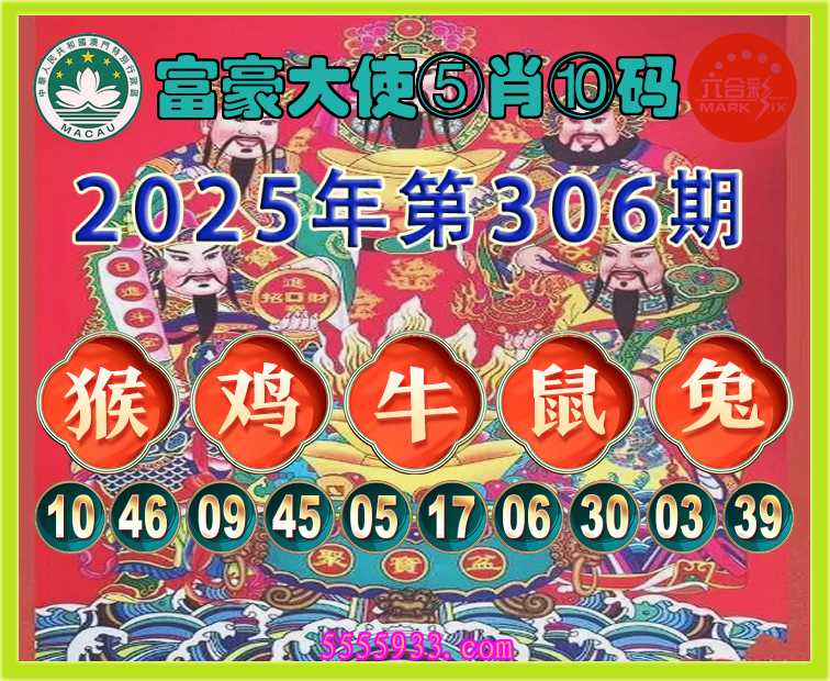 306期:《富豪大使》 ⑤肖⑩码【猴鸡鼠兔】开:牛17