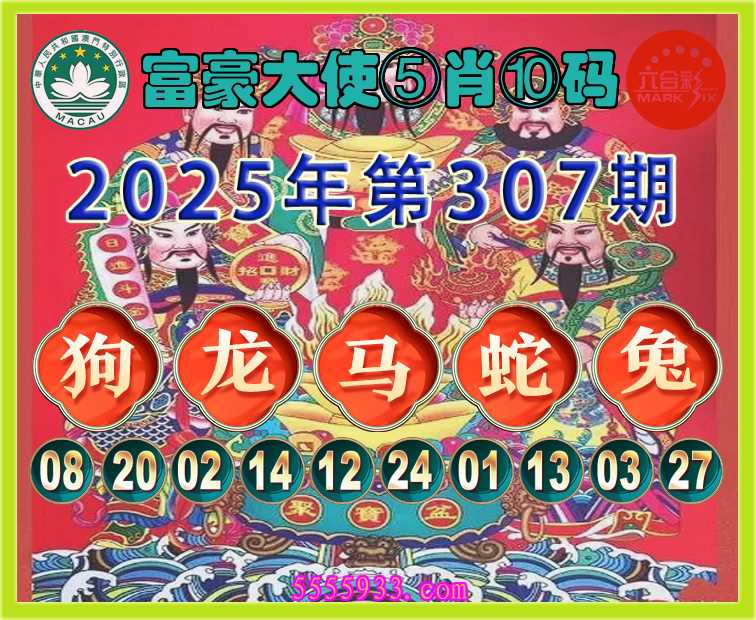 307期:《富豪大使》 ⑤肖⑩码龙马蛇兔】开:狗20