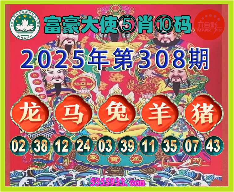308期:《富豪大使》 ⑤肖⑩码【龙马羊猪】开:兔39